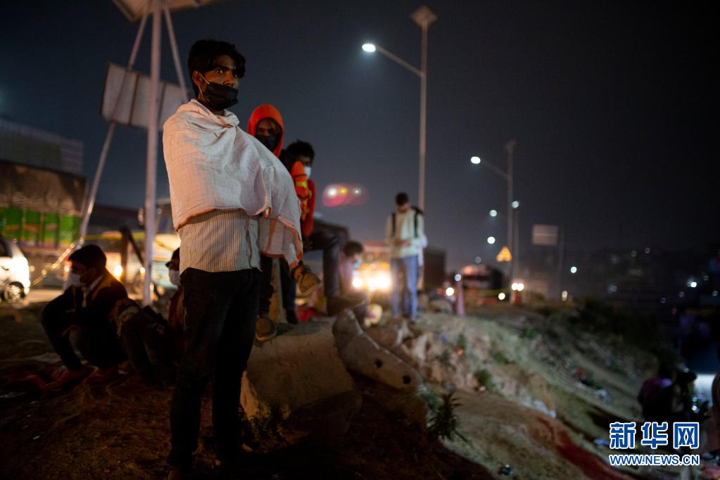 4月28日晚,人們?cè)谀岵礌柺锥技拥聺M都的路邊等車(chē),準(zhǔn)備在封禁措施實(shí)施前離開(kāi)加德滿都返回家鄉(xiāng)。