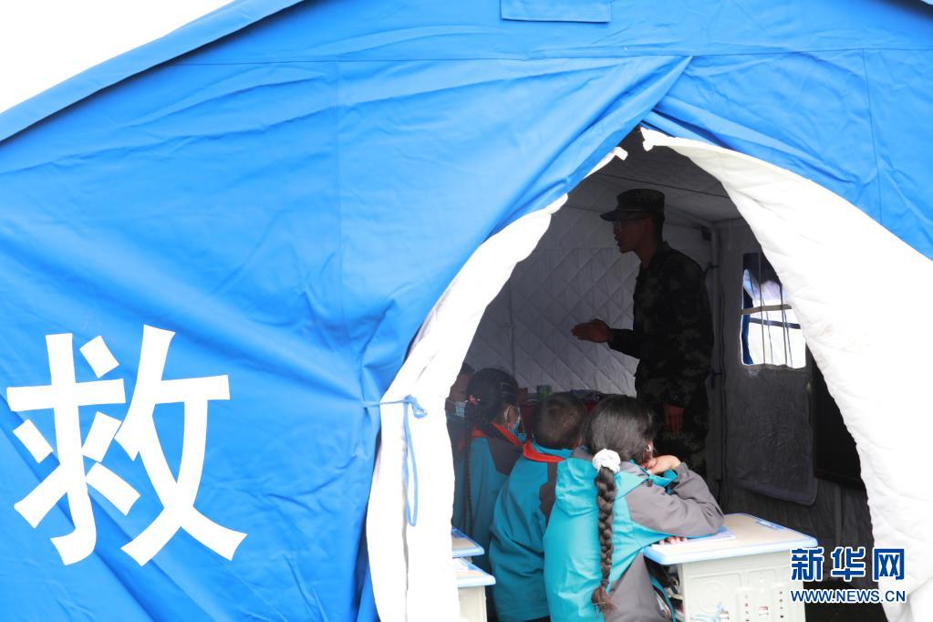 5月24日,武警青海總隊(duì)果洛支隊(duì)機(jī)動大隊(duì)排長張國睿為花石峽鎮(zhèn)藏文中心寄宿制小學(xué)的孩子上課。新華社記者 劉芳 攝