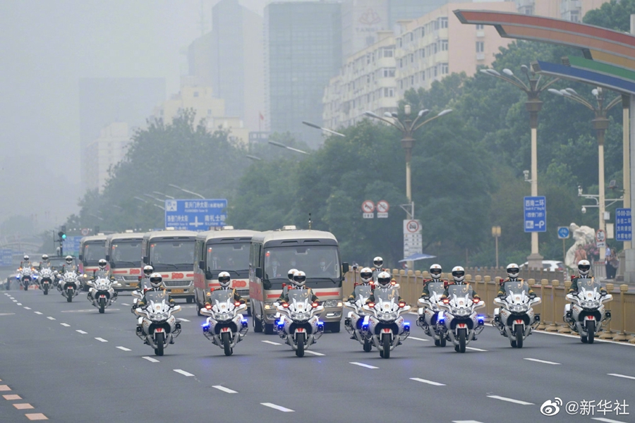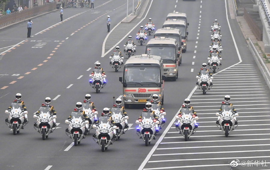 29日上午,“七一勛章”獲得者集體乘坐禮賓車從住地出發(fā),由國(guó)賓護(hù)衛(wèi)隊(duì)護(hù)衛(wèi)前往人民大會(huì)堂。