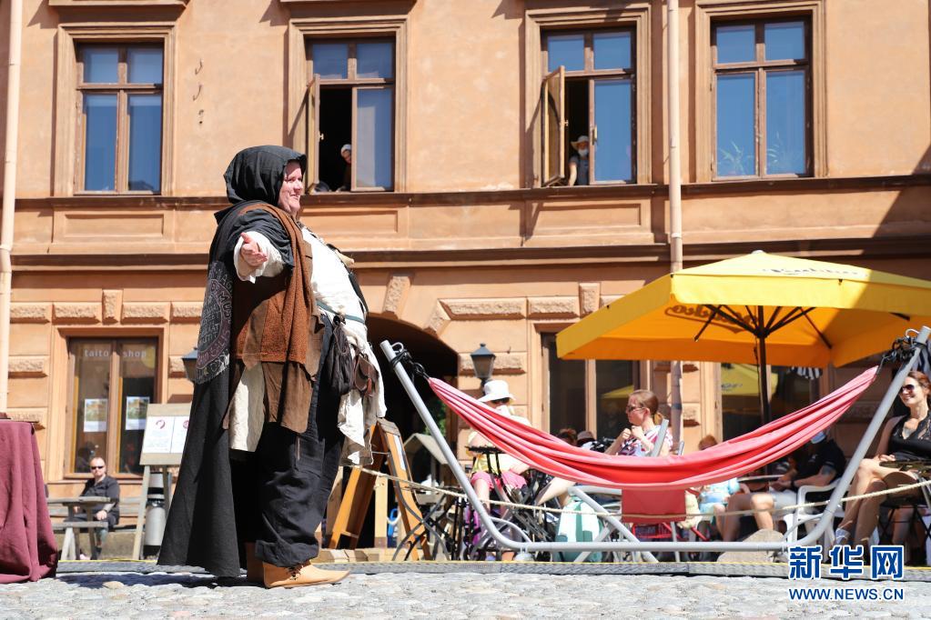 芬蘭古城圖爾庫于7月1日至4日舉行“中世紀(jì)市集”活動(dòng)。人們身著中世紀(jì)風(fēng)格服裝售賣貨品,表演短劇、馬戲和歌舞。