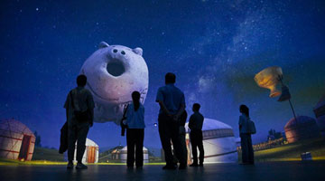 8月28日,观众在博览会上观看XR沉浸式电影《了不起的甲骨文·王子的荣耀》。