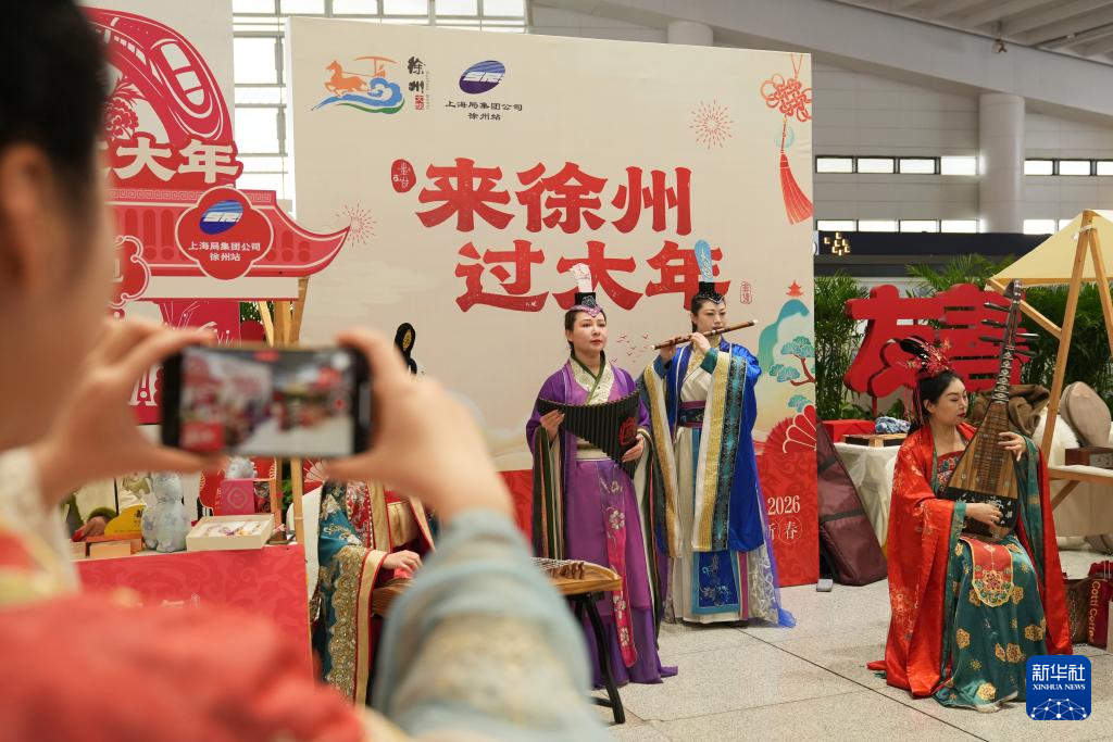 2月10日,在江苏徐州东站,一场“来徐州过大年”活动吸引了不少候车旅客驻足围观。工作人员现场制作、展示香包、剪纸、汉绣等20余种民俗艺术品,营造浓厚的节日氛围,让旅客体验到浓浓年味儿。