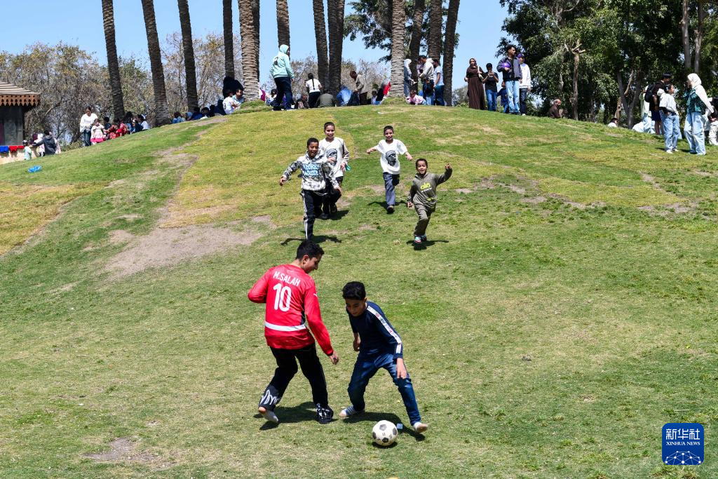 4月13日,儿童在埃及首都开罗的爱资哈尔公园玩耍。