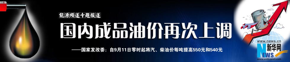 10日,國家發(fā)展改革委發(fā)出通知,決定自9月11日零時(shí)起將汽、柴油價(jià)格每噸分別提高550元和540元,折算到90號(hào)汽油和0號(hào)柴油(全國平均)每升零售價(jià)格分別提高0.41元和0.46元。 [詳細(xì)]