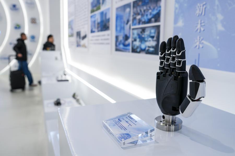 This photo taken on March 10, 2026 shows a bionic hand displayed at the Suzhou Embodied Artificial Intelligence Robotics Innovation Center in Suzhou, east China's Jiangsu Province. (Xinhua/Li Bo)