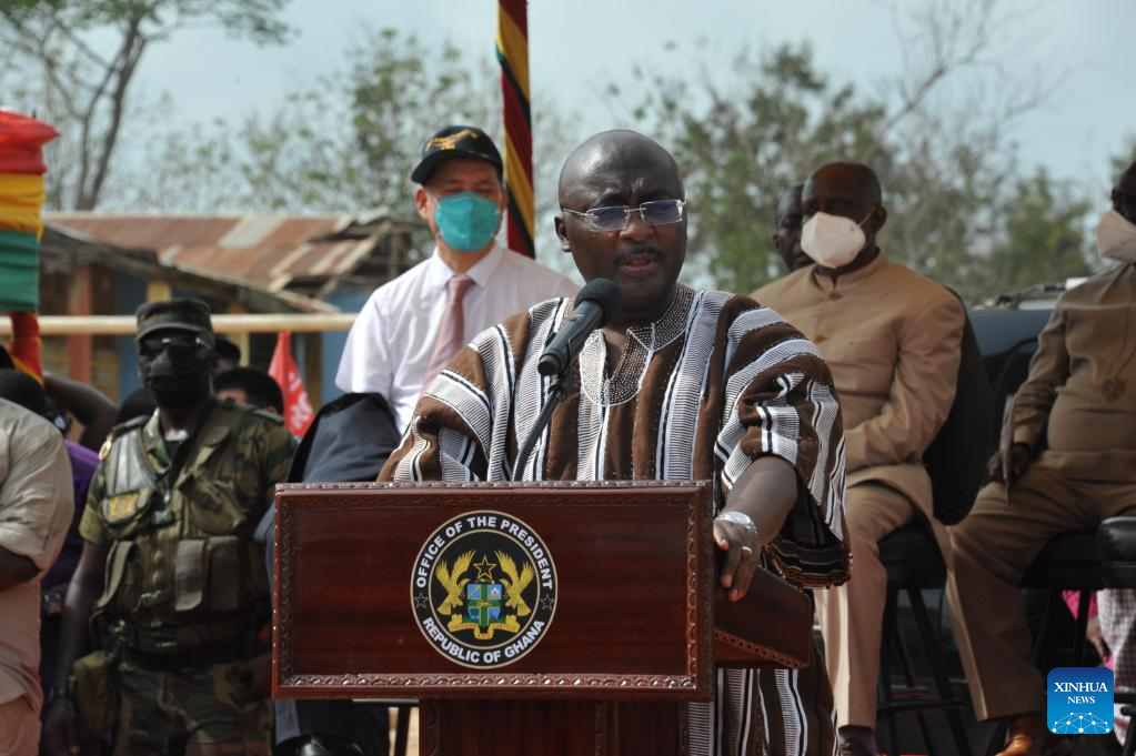 Ghanaian Vice President Mahamudu Bawumia speaks at the commissioning ceremony of a Chinese-assisted road project in Nyinahin, a town in southern Ghana's Ashanti Region, March 25, 2022. Ghanaian Vice President Mahamudu Bawumia on Friday commissioned a Chinese-assisted road project in Nyinahin, a town in southern Ghana's Ashanti Region.