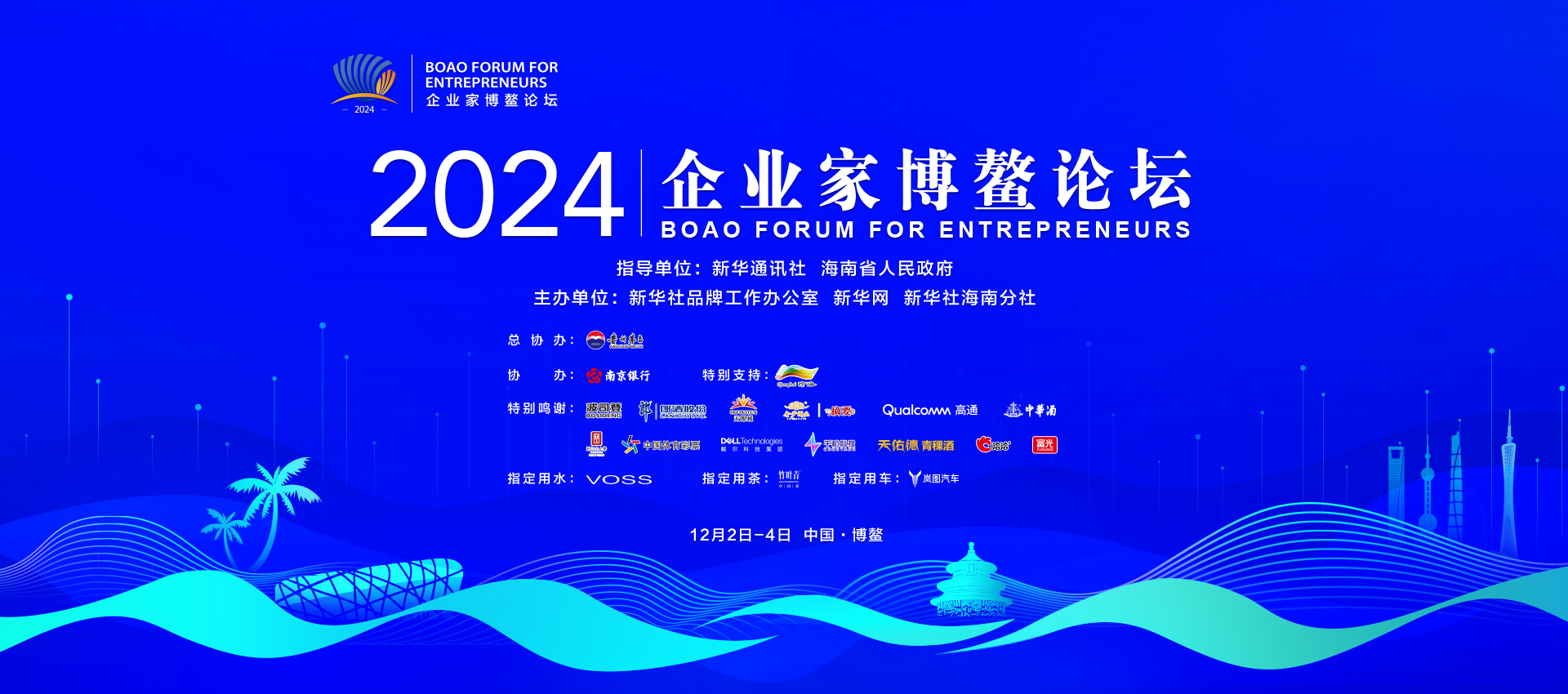 为深入学习贯彻党的二十届三中全会精神,认真贯彻落实党中央决策部署,凝聚深化改革共识,激发创新发展活力,提振企业发展信心,新华社品牌工作办公室、新华网和新华社海南分社拟于12月2日至4日在海南博鳌举办2024企业家博鳌论坛。