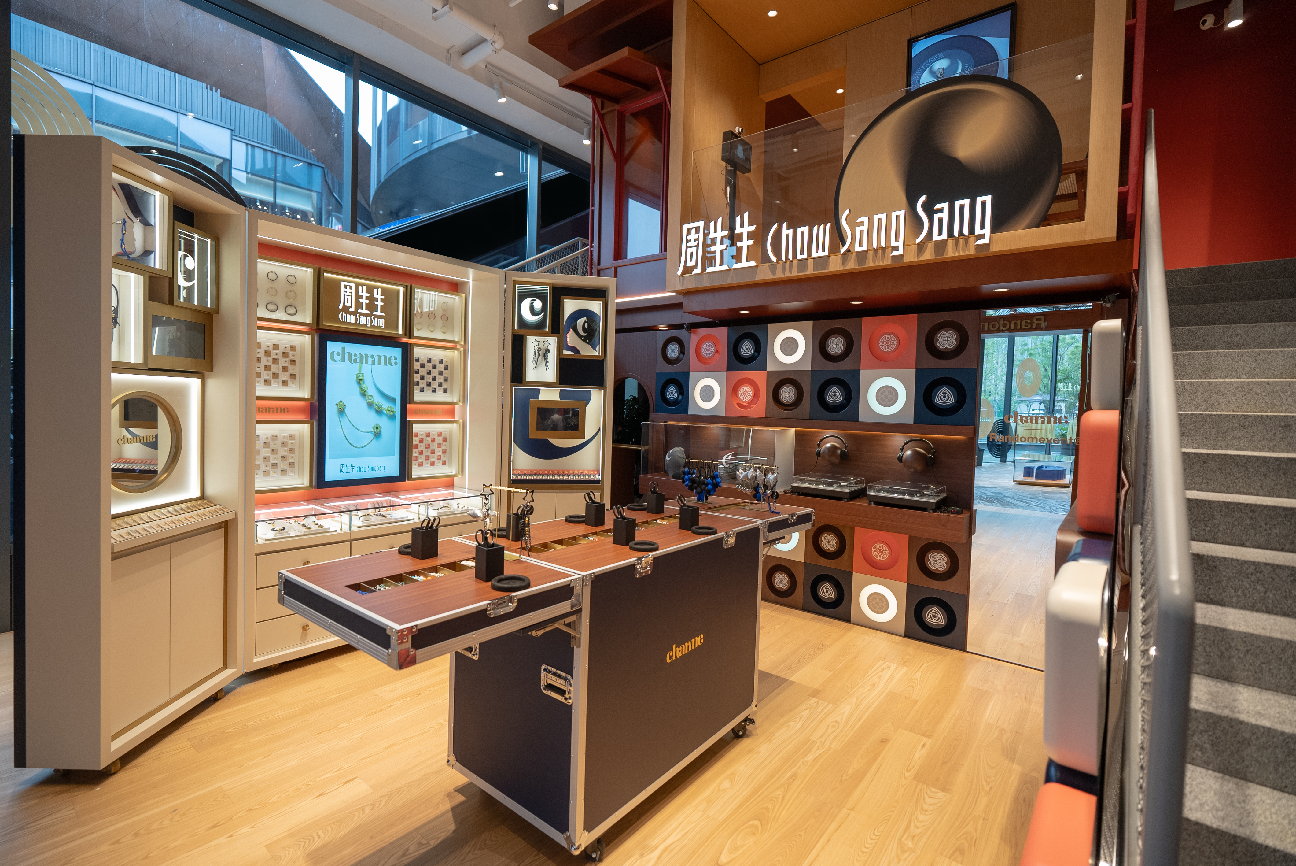 比如,位于K11 Musea的V&A概念店融合多种数字艺术体验,是周生生首间同时展示非珠宝类商品的零售空间;在成都与街头潮流品牌Randomevent打造「幸运唱片行」快闪店;携手广州庙前冰室打造联名特调饮品与主题快闪空间……