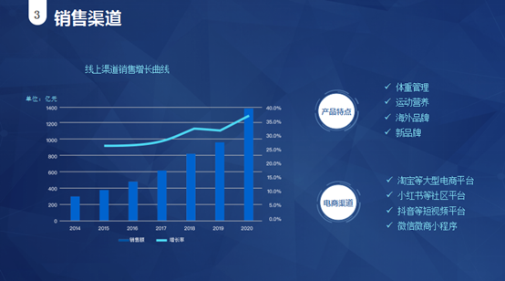 隨著產(chǎn)品形態(tài)和需求的變化,消費(fèi)者對保健食品的了解和獲取渠道也發(fā)生了改變。目前,線上銷售渠道逐漸升溫,淘寶等大型電商平臺、小紅書等社區(qū)平臺、抖音等短視頻平臺、微信微商小程序等成為主要的電商渠道,抖音短視頻和Keep成為大家獲取保健食品信息的主要方式。