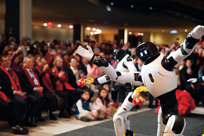 2026 年 2 月 12 日,在位于纽约的联合国总部,智能机器人在由联合国中国书会主办的“骏驰八秩,春煦五洲”主题春节联欢晚会上表演舞蹈