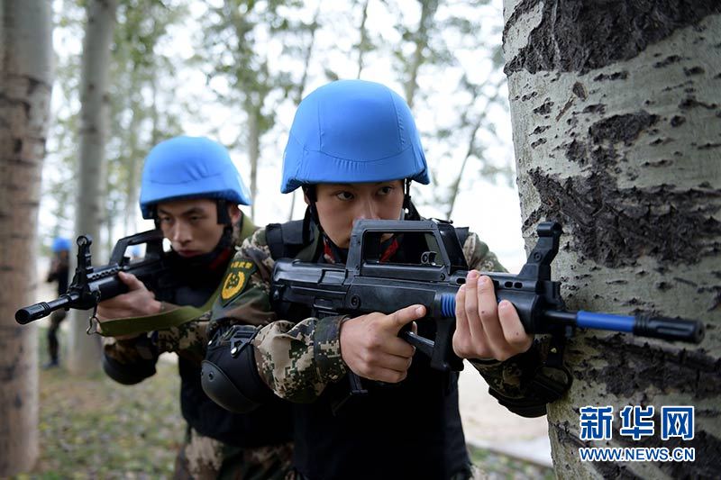????9日,中國(guó)第四支赴利比里亞維和警察防暴隊(duì)在中國(guó)維和警察培訓(xùn)中心組織開(kāi)展戰(zhàn)術(shù)小組模擬實(shí)戰(zhàn)演練。