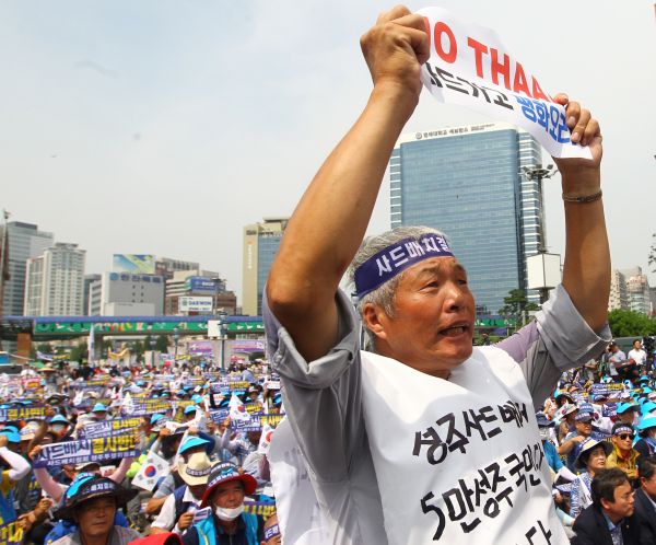 資料圖:韓國民眾舉行集會反對部署“薩德”系統(tǒng) 。新華社記者 姚琪琳 攝