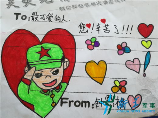 ????“官兵們很辛苦,早上6點(diǎn)就出門(mén),直到深夜才回來(lái)休息。前天晚上,累了一天的官兵打著手電筒,幫助我們學(xué)校清理走廊的垃圾,扶正校園里被臺(tái)風(fēng)吹倒的樹(shù)木,讓學(xué)校師生非常感動(dòng)?!蔽寰壍诙?shí)驗(yàn)學(xué)校德育處負(fù)責(zé)人黃森說(shuō),小朋友們想用自己的方式表達(dá)對(duì)官兵的感謝,就自己動(dòng)手制作了感恩卡。
