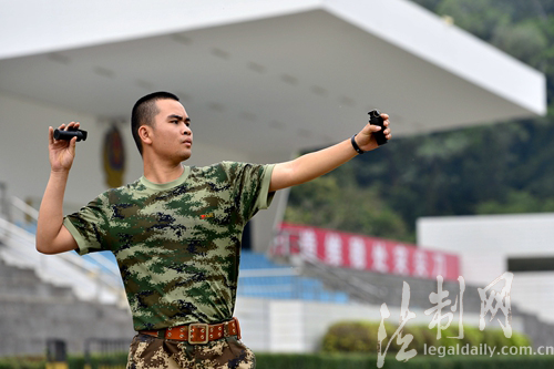 ????練兵場上空被投擲的防暴彈劃出一條條優(yōu)美的弧線?!鞍谁h(huán)、九環(huán)、十環(huán)……。”報(bào)靶員響亮的聲音響徹練兵場。班長蔡錦彬投擲的防暴彈仿佛對靶心有向心力,一環(huán)比一環(huán)高;其他官兵也不甘示弱,剛剛創(chuàng)下的好成績不斷被刷新,戰(zhàn)士廖國勇猶如賽場上的一匹黑馬,憑著過硬的實(shí)力,一路過關(guān)斬將,奪得第一。(林宇華)