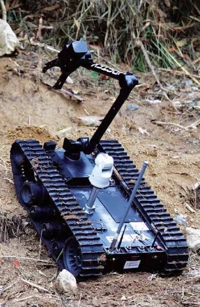 雷場(chǎng)清障車,是通過遙控操作的。具有在坡度小于40°的山地進(jìn)行清障排爆作業(yè)的功能。該車具有較強(qiáng)的爬坡能力,操作手可以在1000米范圍內(nèi)實(shí)施無(wú)線遙控控制,完成掃除淺層防步兵地雷、清除灌木叢和鏟運(yùn)樹木等任務(wù),以電錘擊爆地雷手雷等未爆炸物品,這期間即使產(chǎn)生爆破碎片或者沖擊波都不會(huì)對(duì)操作員構(gòu)成危險(xiǎn)。