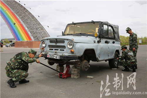 圖為二連邊防檢查站官兵對涉嫌走私車輛進(jìn)行分解檢查
