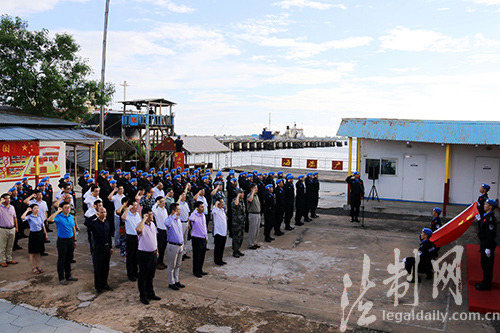 ????利比里亞當(dāng)?shù)貢r(shí)間6月28日,中國第五支駐利比里亞維和警察防暴隊(duì)舉行維和警察首個(gè)海外黨建教育展廳揭牌儀式,為中國共產(chǎn)黨建黨96周年獻(xiàn)禮。中國駐利比里亞大使館、駐利中資機(jī)構(gòu)、企業(yè)及在利華人黨員等200余人參加揭牌儀式活動(dòng)。