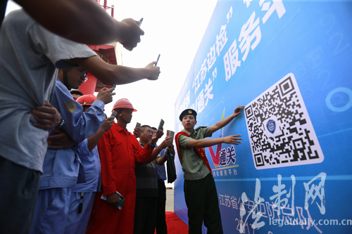 ????8月18日,江蘇邊防總隊(duì)鹽城邊防檢查站在大豐港集裝箱碼頭開展了“江蘇邊檢”微信公眾號推廣活動(dòng),演示“V通關(guān)”服務(wù)流程,解答服務(wù)對象提問。