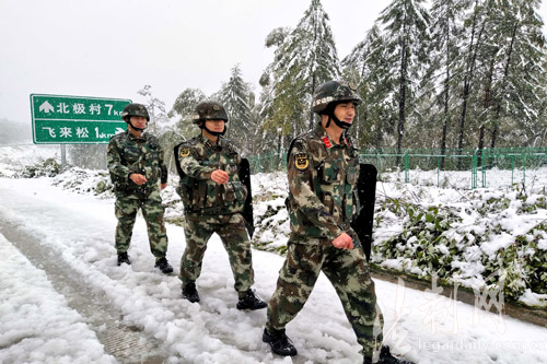 ????8月28日,位于祖國(guó)最北端的黑龍江省漠河縣北極村,迎來(lái)今年入秋的第一場(chǎng)雪,飛舞的雪花給神州北極披上了一層神秘的外紗,風(fēng)景美不勝收。駐守在祖國(guó)最北端的黑龍江省邊防總隊(duì)大興安嶺地區(qū)邊防支隊(duì)北極邊防派出所組織官兵在轄區(qū)重點(diǎn)路段冒雪巡邏,守護(hù)游客安全“找北”。(褚福超)