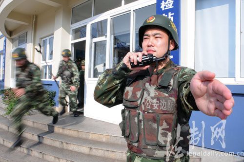圖為邊檢官兵聽到警報(bào)快速反應(yīng)
