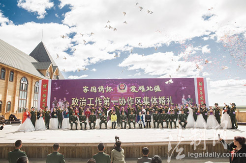 ????8月29日,內蒙古邊防總隊呼倫貝爾邊防支隊在美麗的輝河濕地舉辦了“家國情懷 愛耀北疆”集體婚禮。支隊政委李天勇、阿日哈沙特邊檢站政委湯天彪、支隊部分常委、協(xié)作區(qū)單位部分領導及支隊共建單位領導出席。