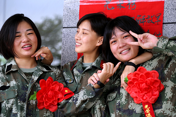 ????原標(biāo)題:又是一年退伍季 軍營再響駝鈴聲 深圳邊防部隊400余名老兵退伍 邊防女兵退伍,笑中帶淚