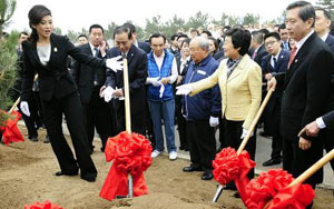 李海峰陪同泰國總理英拉北京植“中泰友誼樹”