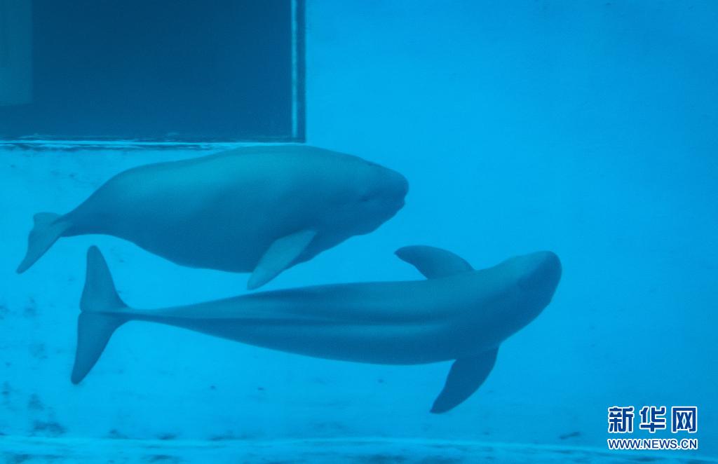 7月5日,江豚媽媽洋洋和小江豚YYC在水中游動(dòng)。新華社記者肖藝九攝