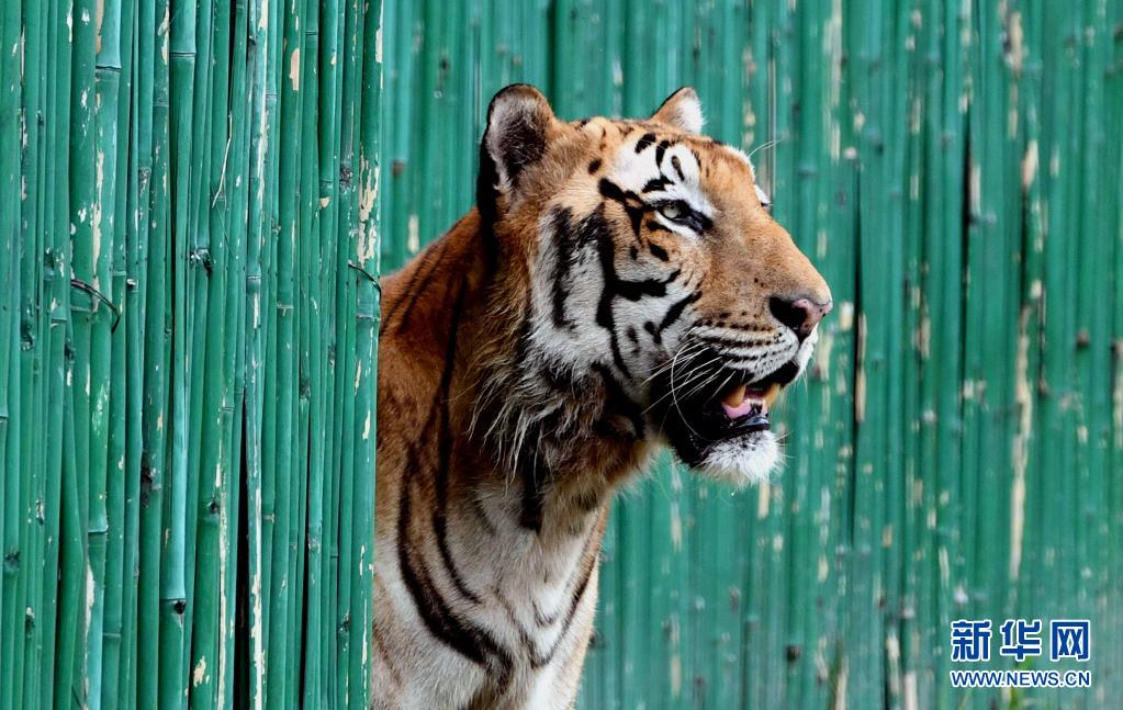 這是8月1日在印度新德里動物園拍攝的孟加拉虎。