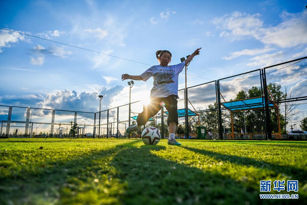 7月26日,吉布斯樂(lè)瑪在錫尼河西蘇木一處足球場(chǎng)踢球。