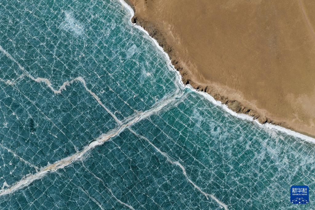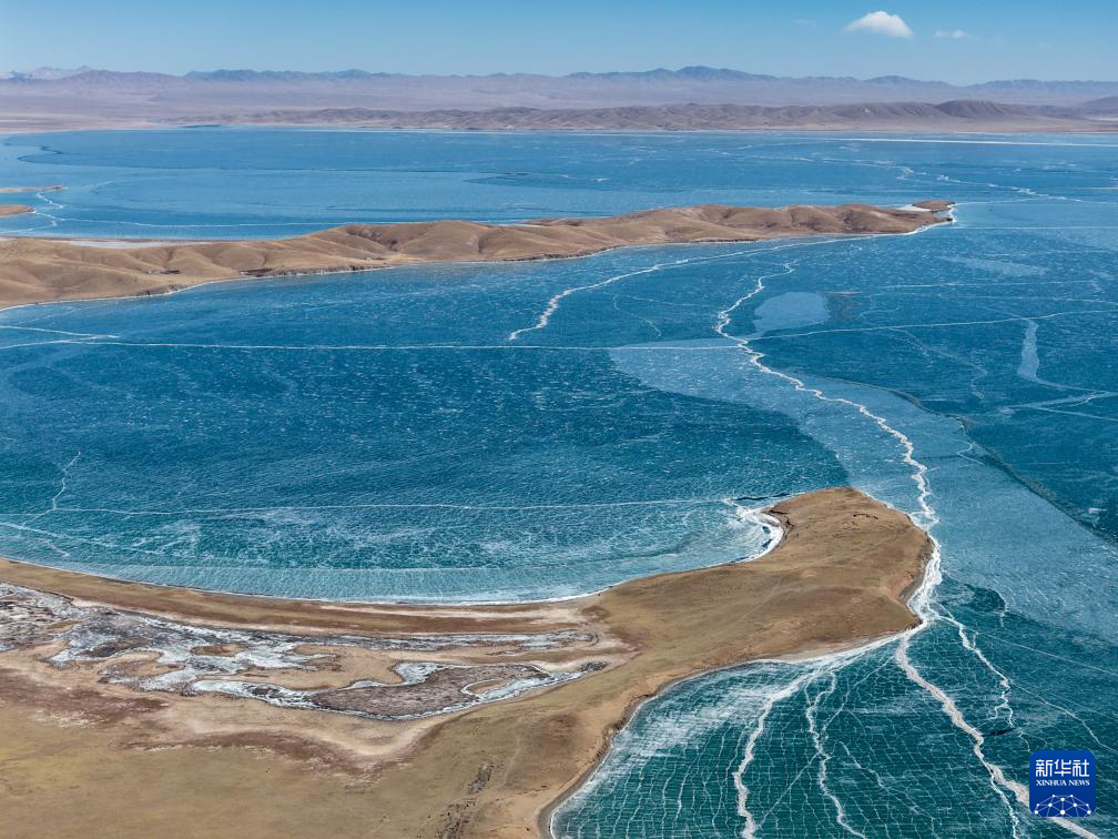这是3月10日在青海省果洛藏族自治州玛多县境内拍摄的扎陵湖一角(无人机照片)。