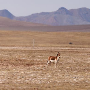3月10日,在青海省果洛藏族自治州玛多县境内的黄河源地区,一只藏野驴在觅食。