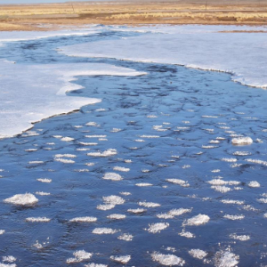 春回大地,位于甘肃省阿克塞哈萨克族自治县阿勒腾乡的哈尔腾河冰雪消融,初现生机。