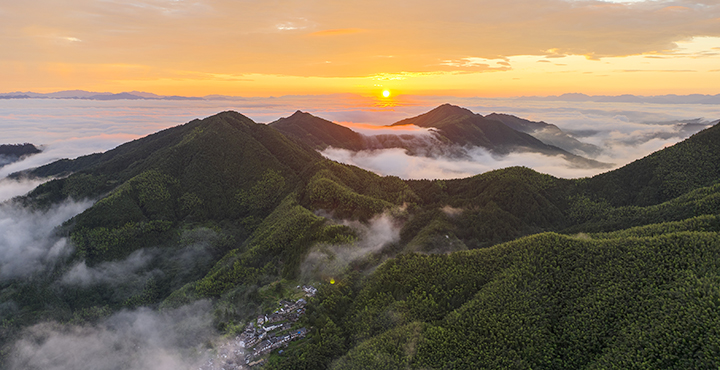 雨后初霁,安徽省黄山市休宁县溪口镇木梨硔村出现云海景观,缥缈云雾与徽派村落相互映衬,美若仙境。