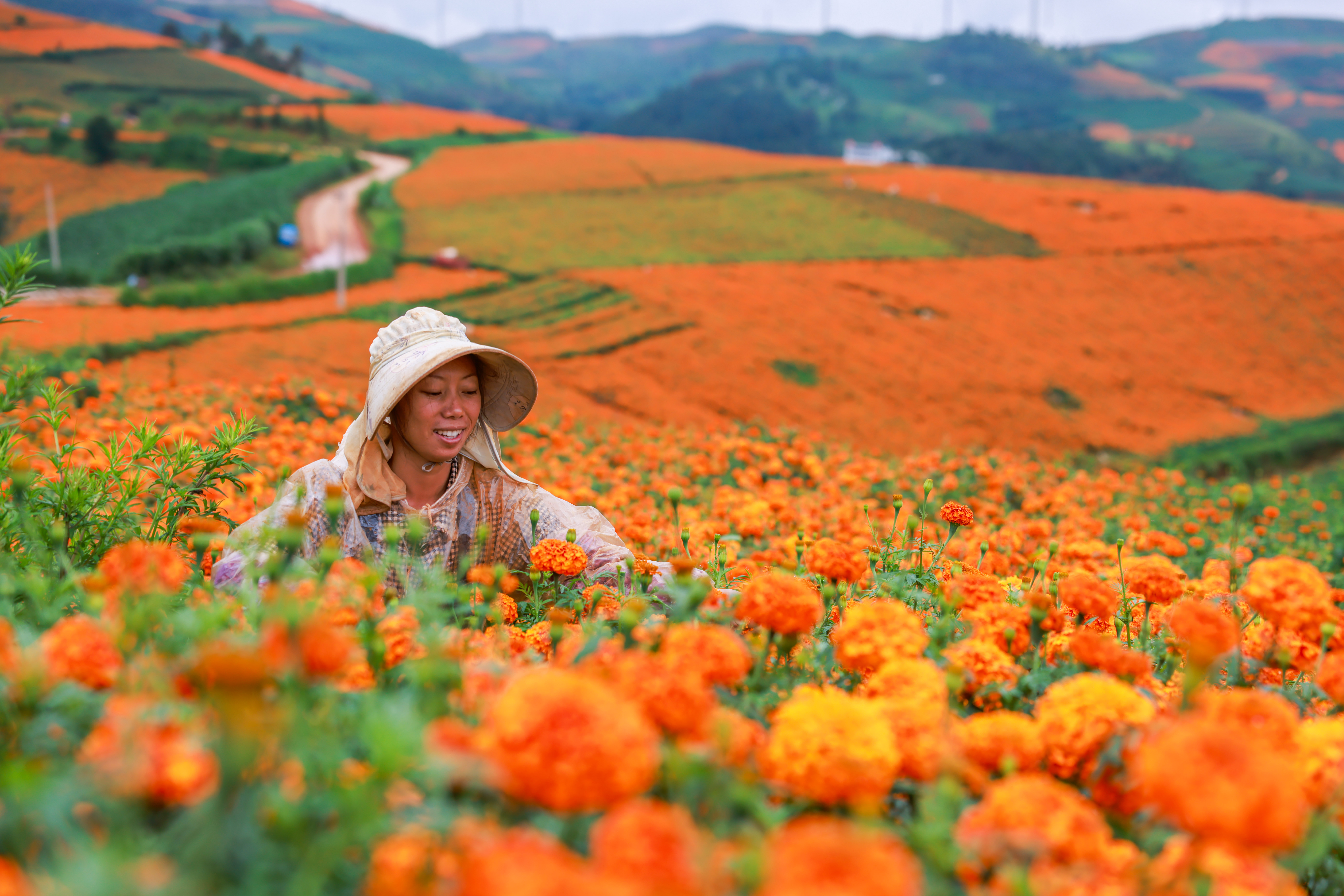 连日来,在云南省蒙自市、开远市、腾冲市、陆良县、丘北县等地,漫山遍野的万寿菊随风摇曳,宛如一片金色的海洋。