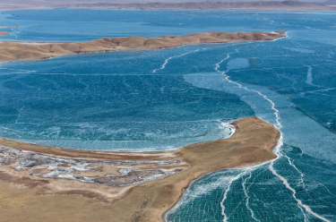 初春时节,黄河源地区冰雪渐融,湖冰与广袤草原相映成景,尽显辽阔壮美。