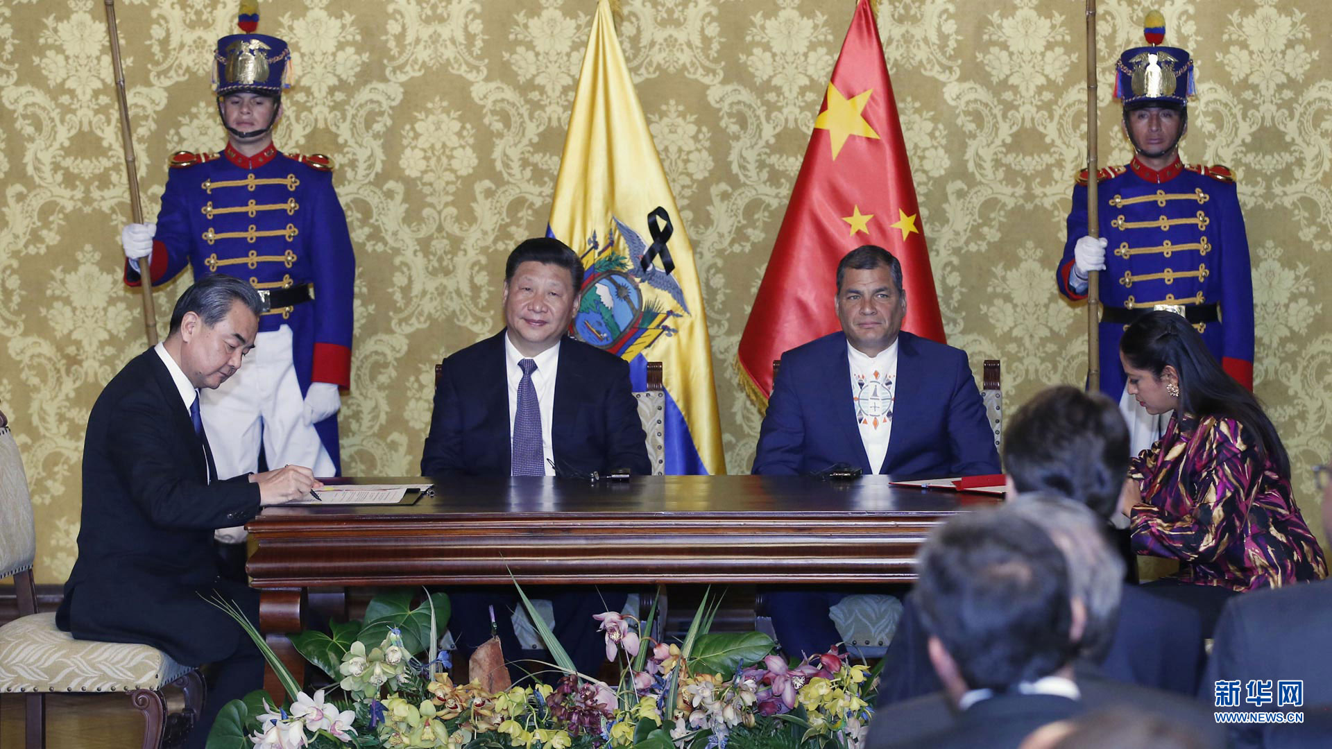 當(dāng)?shù)貢r(shí)間11月18日,國家主席習(xí)近平在基多同厄瓜多爾總統(tǒng)科雷亞共同出席中方援建的厄瓜多爾公共安全應(yīng)急指揮中心聯(lián)合實(shí)驗(yàn)室揭牌儀式,喬內(nèi)醫(yī)院奠基、科卡科多-辛克雷水電站竣工發(fā)電視頻連線活動(dòng)。這是習(xí)近平出席活動(dòng)后致辭。新華社記者 馬占成 攝2016-11-19