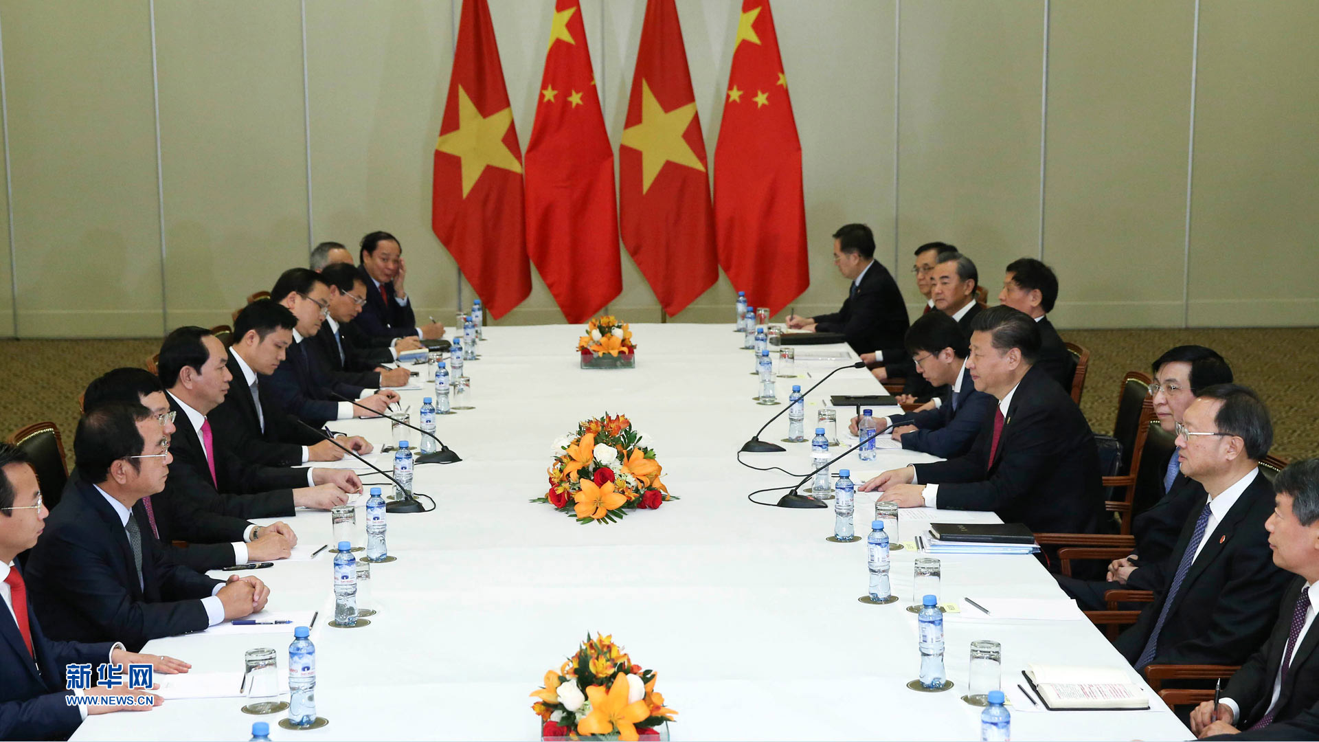 11月19日,國家主席習(xí)近平在利馬會(huì)見越南國家主席陳大光。新華社記者 龐興雷 攝2016-11-20