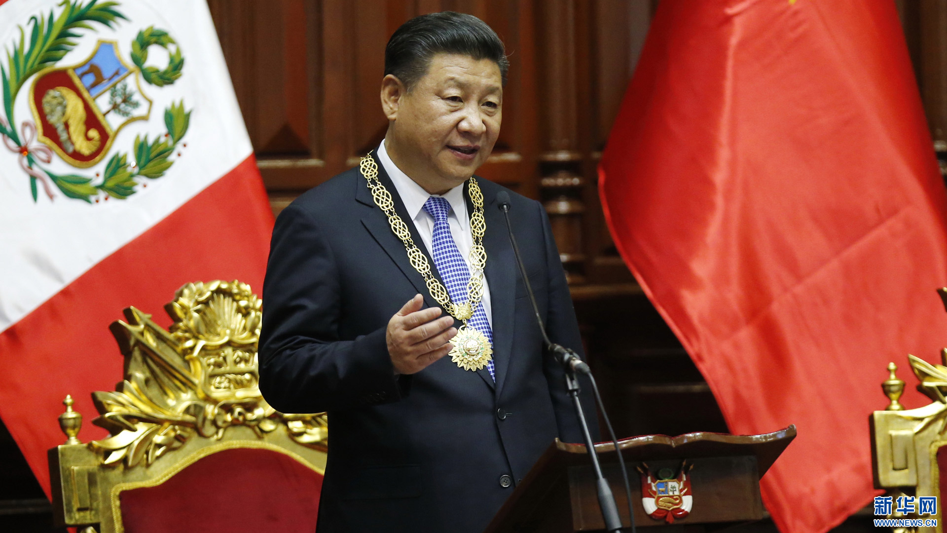 11月21日,國家主席習(xí)近平在秘魯國會(huì)發(fā)表題為《同舟共濟(jì)、揚(yáng)帆遠(yuǎn)航,共創(chuàng)中拉關(guān)系美好未來》的重要演講。 新華社記者 龐興雷 攝2016-11-22