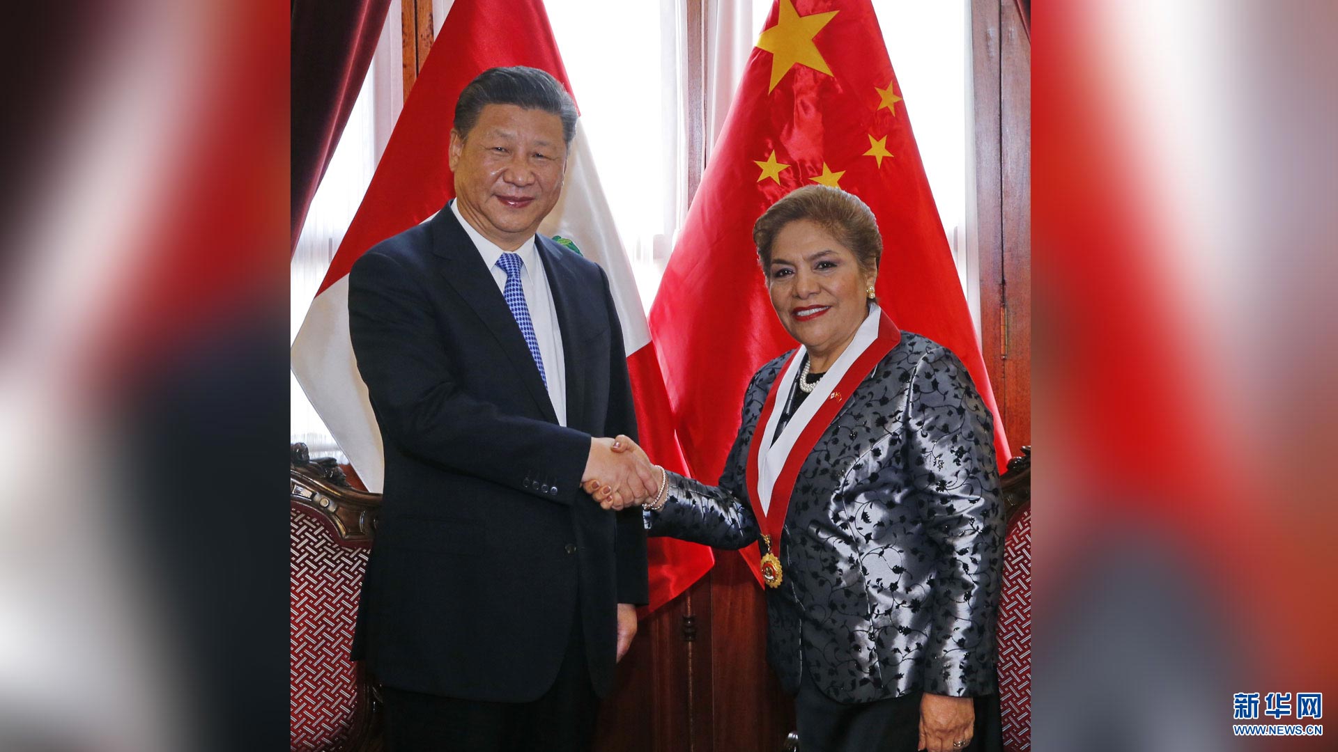 11月21日,國家主席習(xí)近平在利馬會(huì)見秘魯國會(huì)主席薩爾加多。新華社記者 鞠鵬 攝2016-11-23