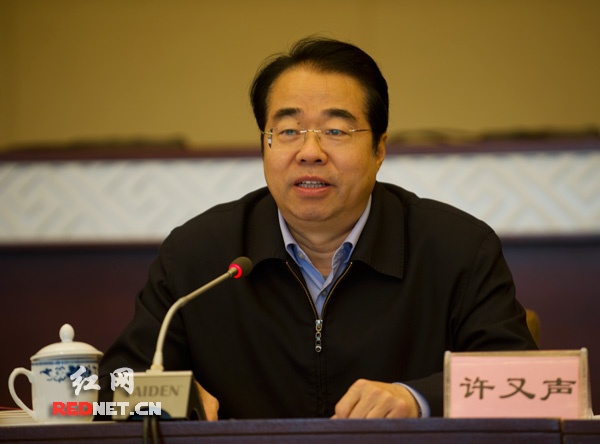 湖南省委常委、省委宣傳部部長(zhǎng)許又聲在動(dòng)員會(huì)上講話。