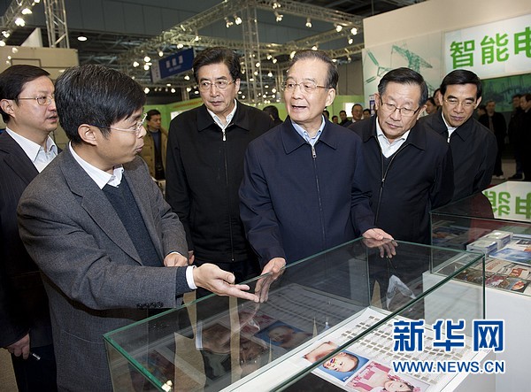 ??? 12月13日,國務(wù)院總理溫家寶到北京中關(guān)村考察并與部分企業(yè)負(fù)責(zé)人座談。這是溫家寶在中關(guān)村自主創(chuàng)新示范區(qū)展示中心考察。 新華社記者黃敬文 攝