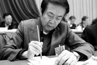 政協(xié)委員袁熙坤用毛筆做筆記 網(wǎng)友贊“有范兒”