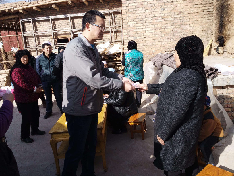 包毅為貧困戶發(fā)放慰問金