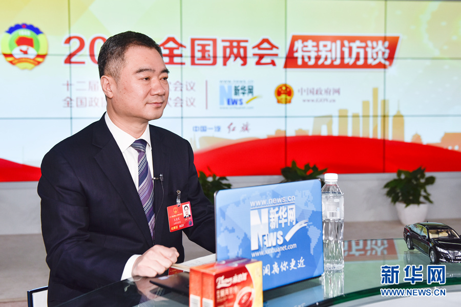 3月12日,全國人大代表,運城市市長王清憲做客新華網(wǎng)2016全國兩會特別訪談,與新華網(wǎng)網(wǎng)友在線交流。圖為王清憲在訪談現(xiàn)場。新華網(wǎng) 付宇鵬 攝
