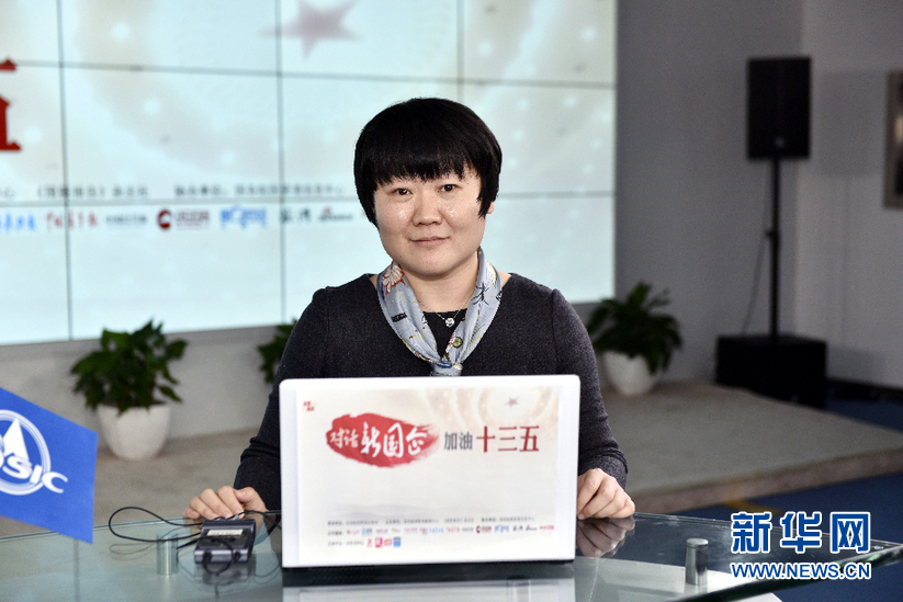 2016年3月13日,全國政協(xié)委員,中國航天科工集團公司副總經理魏毅寅做客新華網兩會訪談直播間。圖為主持人朱研。新華網 付宇鵬 攝