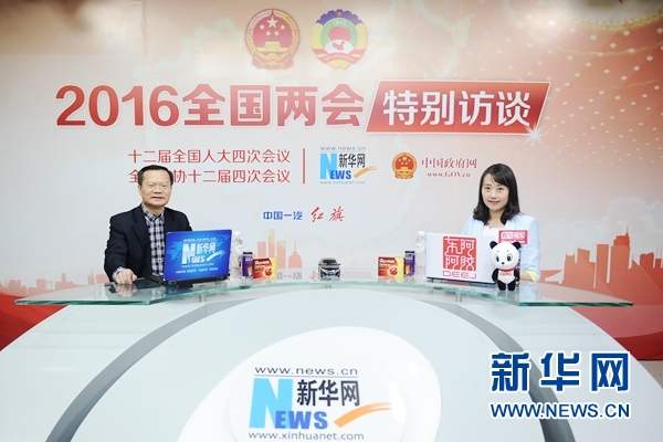圖為全國人大代表、湖南省益陽市委書記胡忠雄做客2016新華網(wǎng)兩會訪談直播間。新華網(wǎng) 盧志佳 攝
