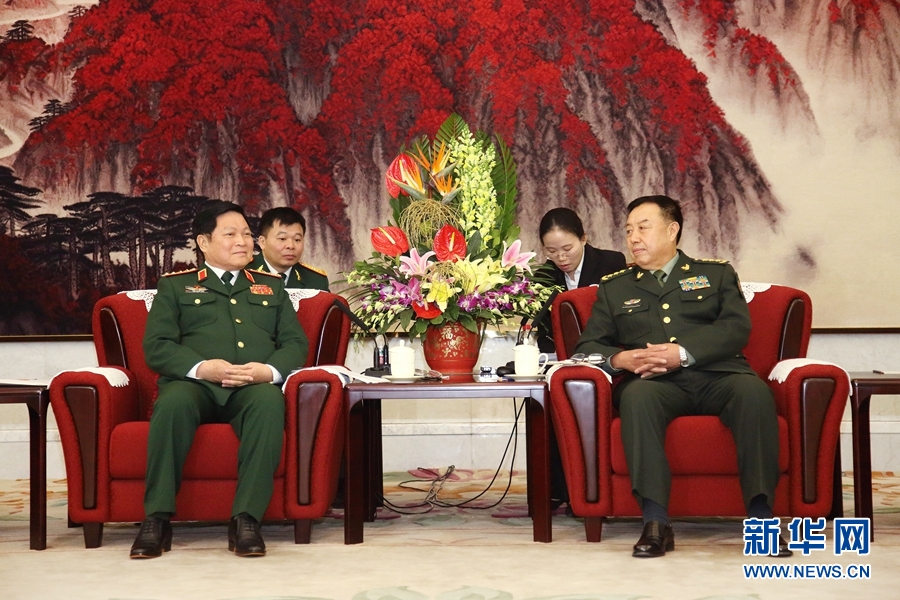 1月13日,中央軍委副主席范長(zhǎng)龍?jiān)诒本┌艘淮髽菚?huì)見(jiàn)越南國(guó)防部長(zhǎng)吳春歷。新華社發(fā)(劉芳 攝)