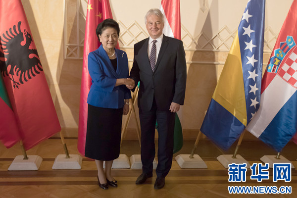 6月19日,在匈牙利布達(dá)佩斯,中國國務(wù)院副總理劉延?xùn)|(左)會見匈牙利副總理謝姆延。 新華社發(fā)(弗爾季·奧蒂洛攝)