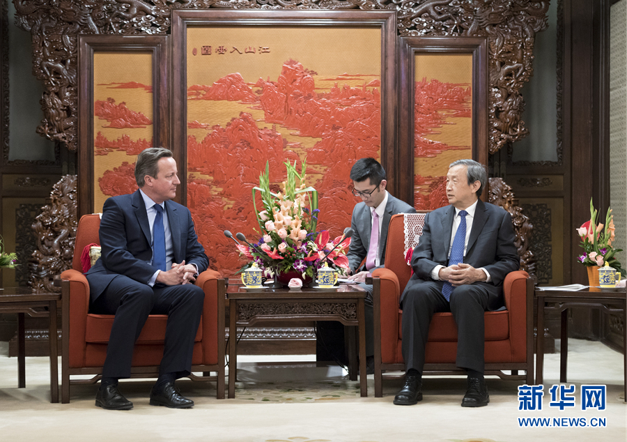 9月20日,國(guó)務(wù)院副總理馬凱在北京中南海紫光閣會(huì)見(jiàn)來(lái)訪的英國(guó)前首相卡梅倫。 新華社記者 丁海濤 攝